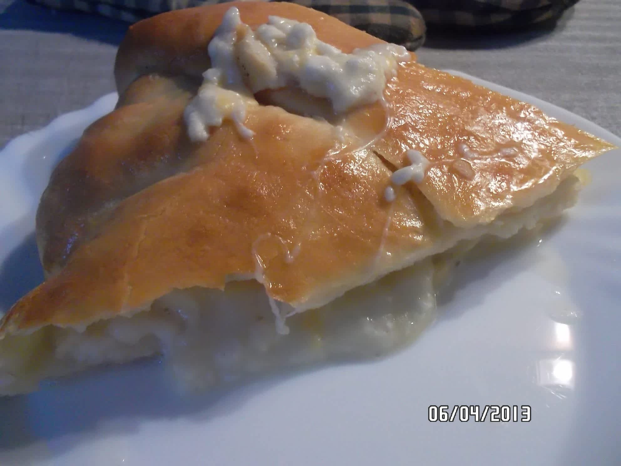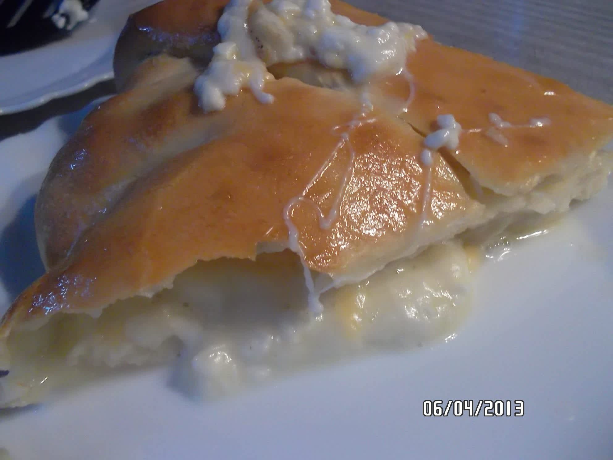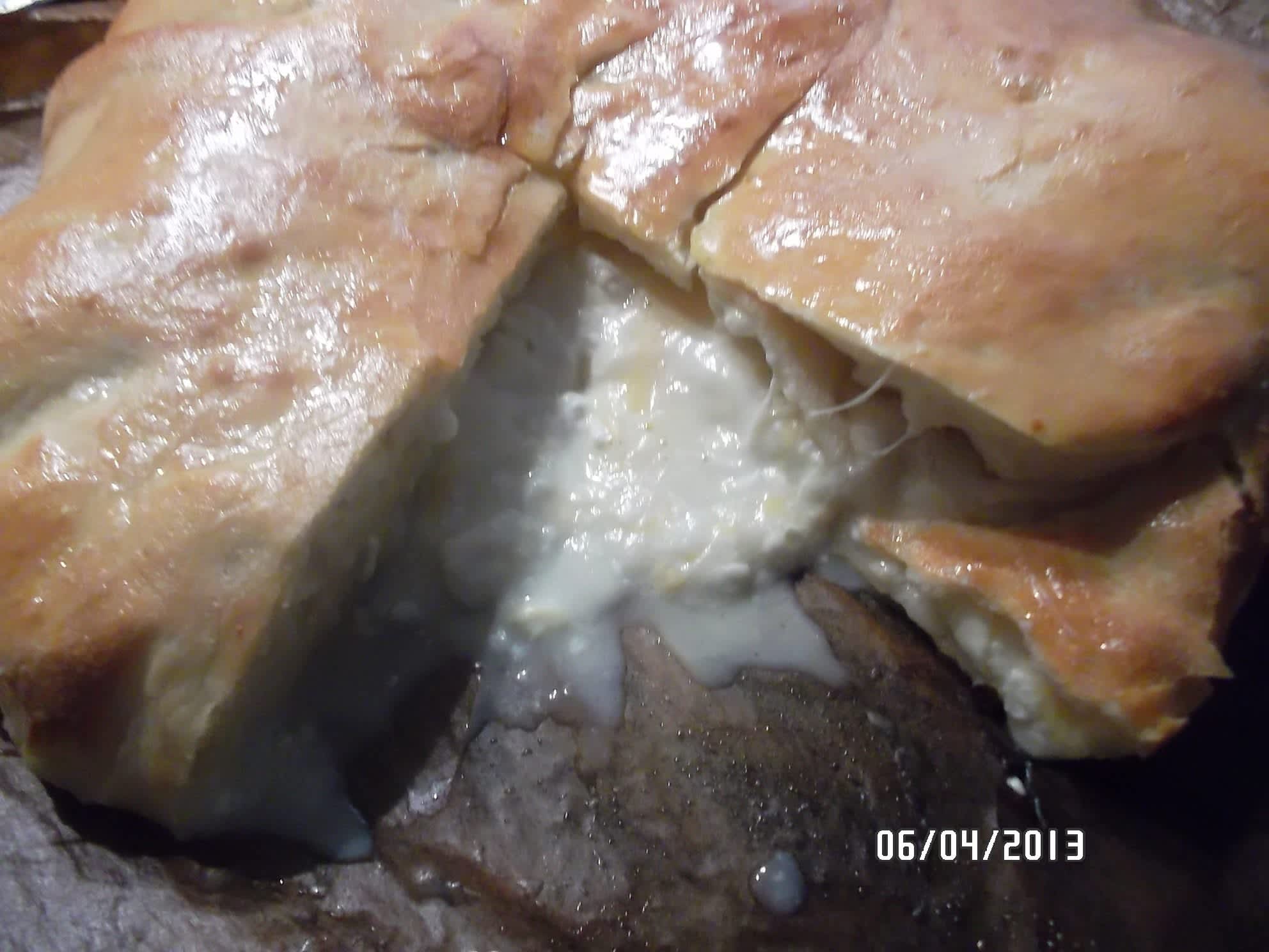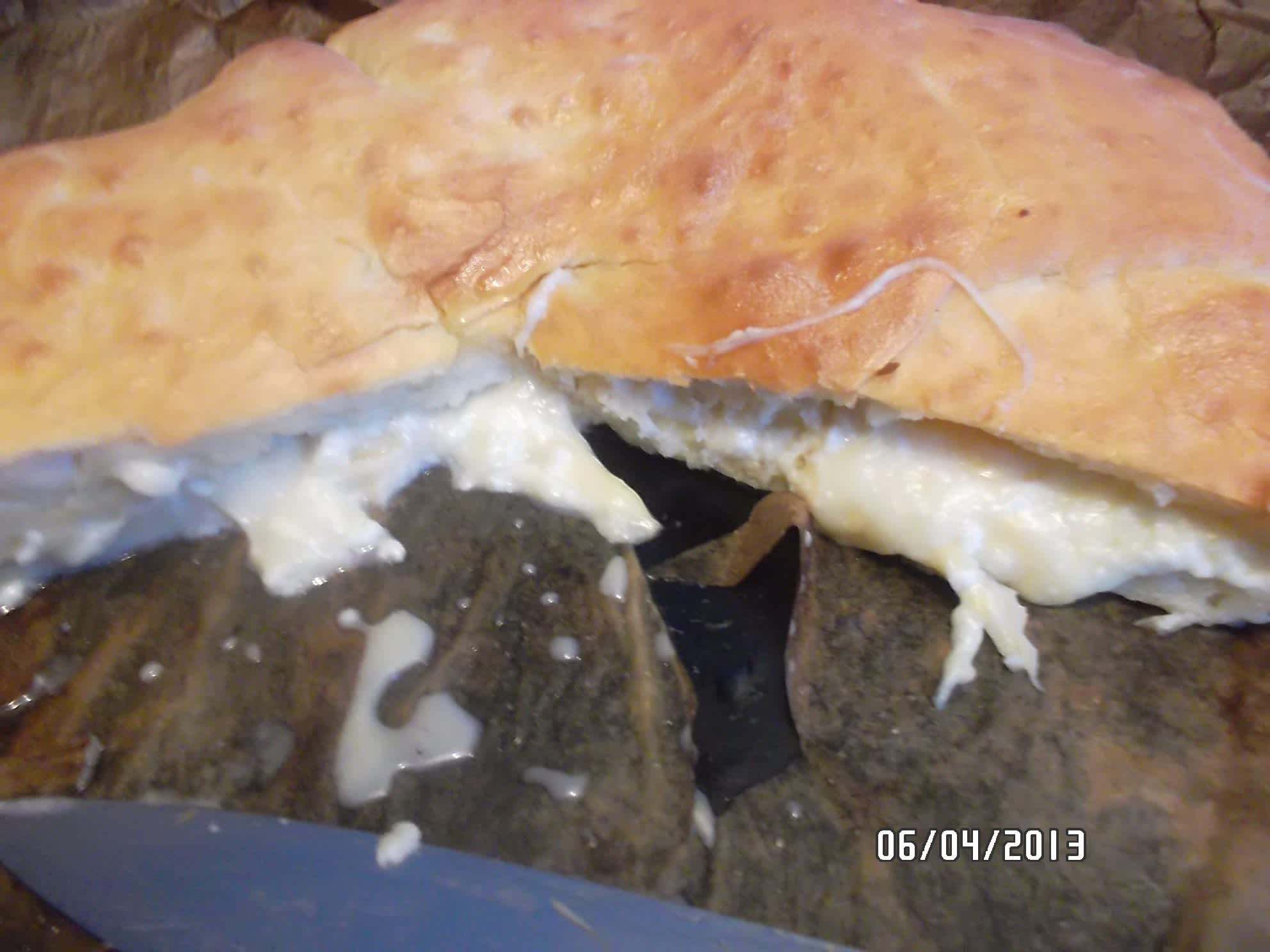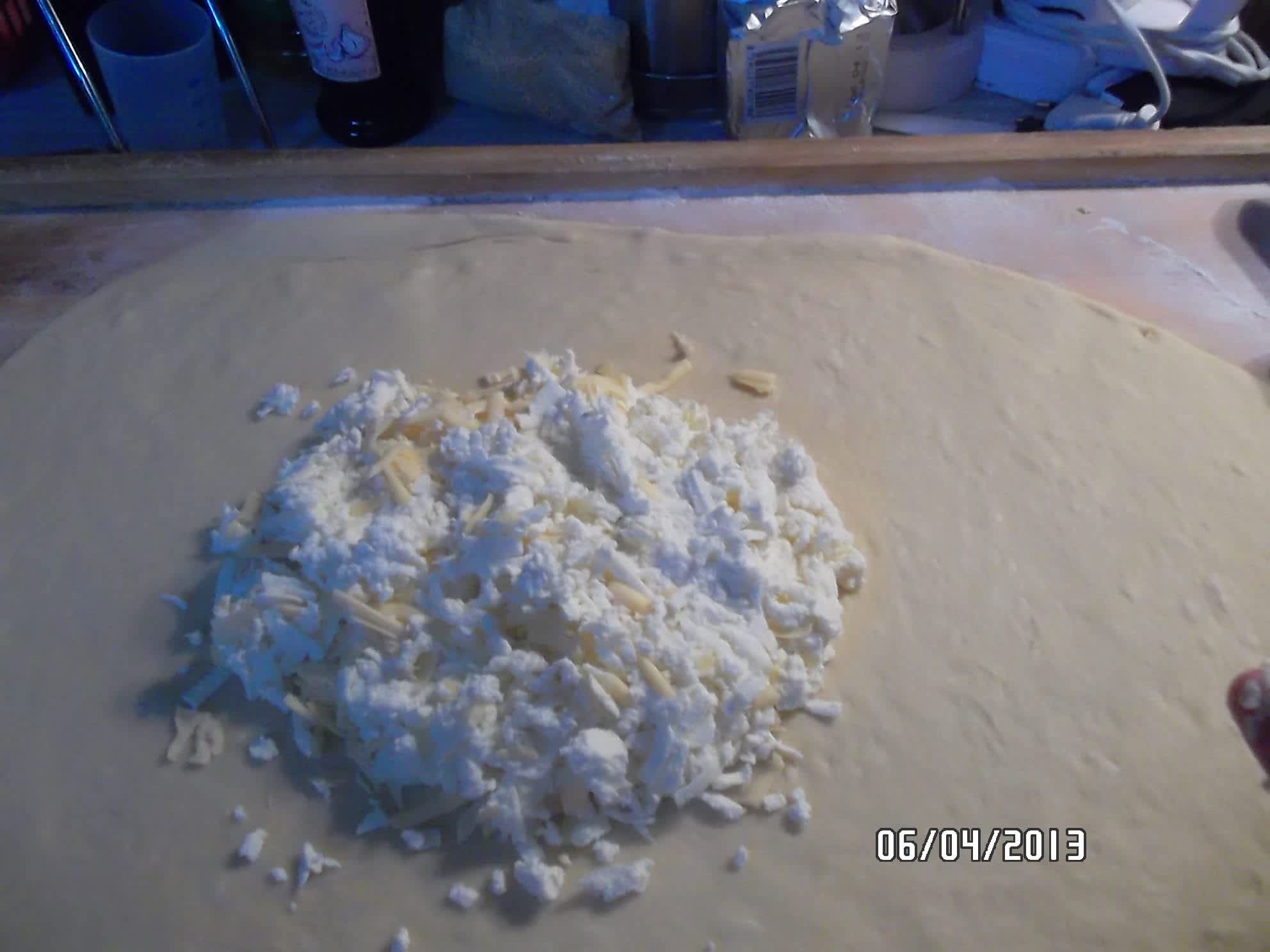 Těsto rozválíme na veliký kruh a doprostřed dáme sýr.