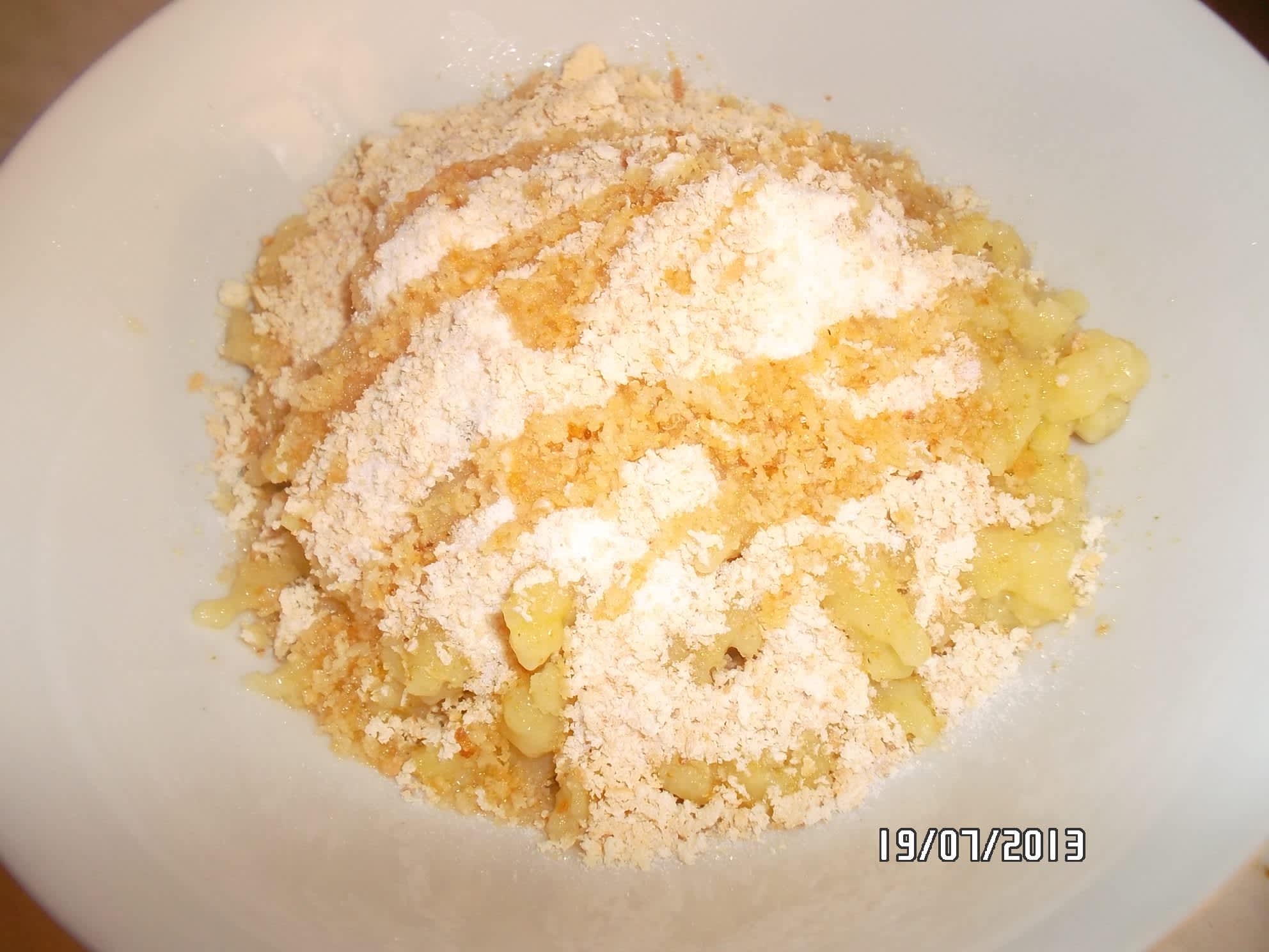 Dítě to nejí, má halušky s opraženou čerstvou strouhankou, kterou smíchám s cukrem.