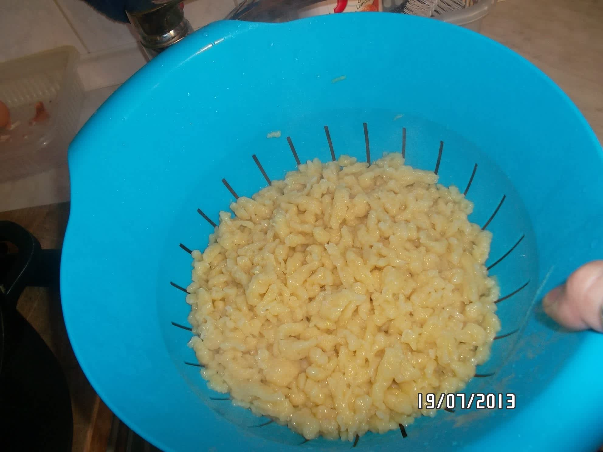 Od doby, než začne voda znovu vařit počkám asi 4 minuty a halušku ochutnám, zda je už hotová, což by měla být….