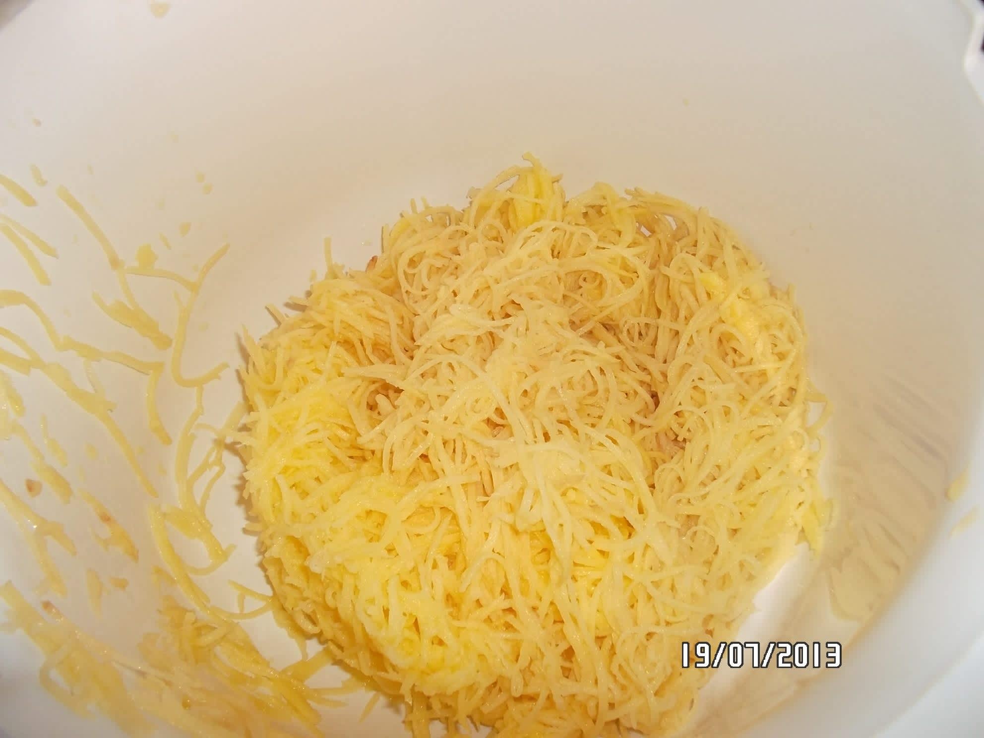 Brambory nastrouháme na jemném struhadlu, nebo je nastrouhá robot