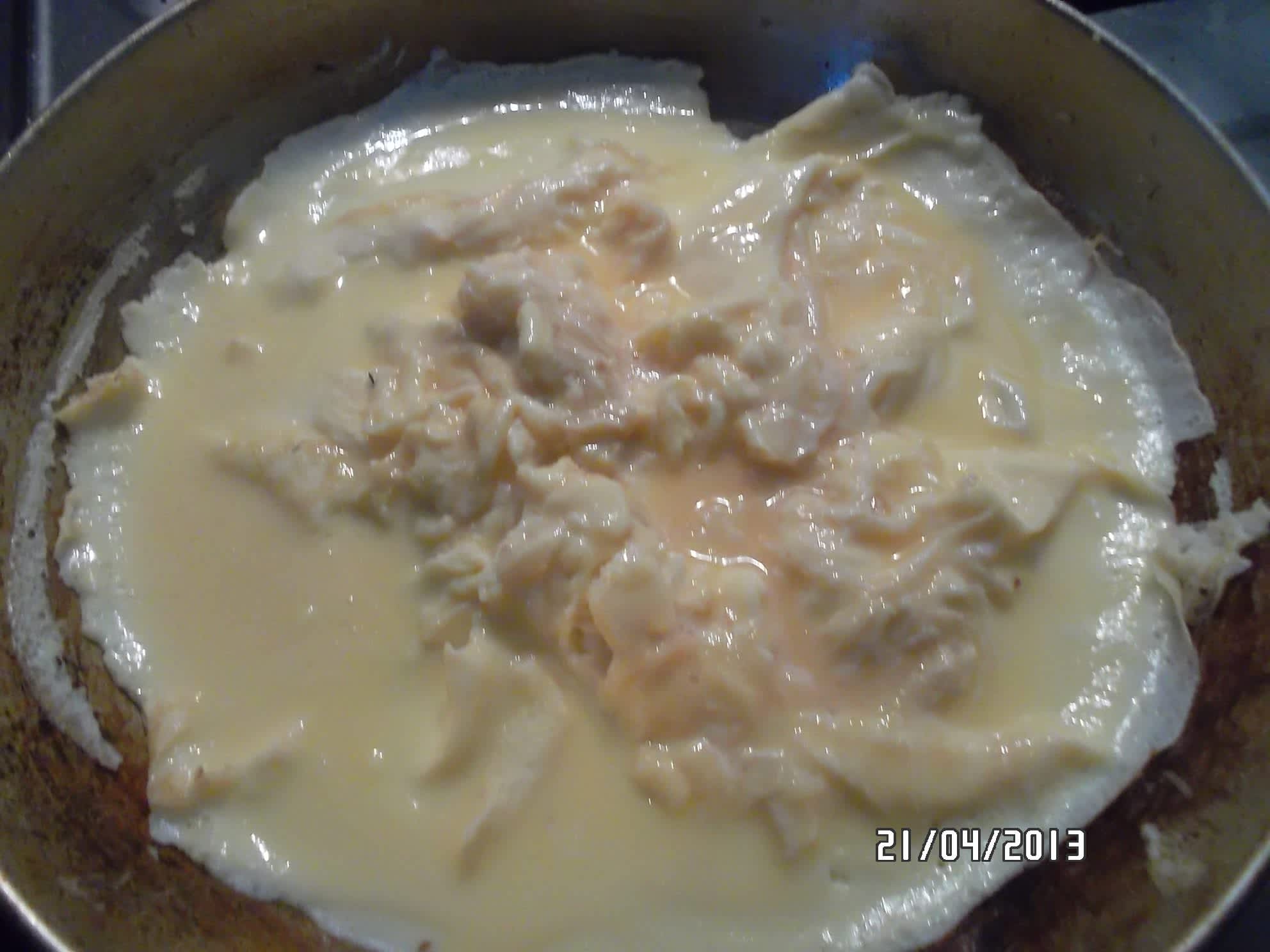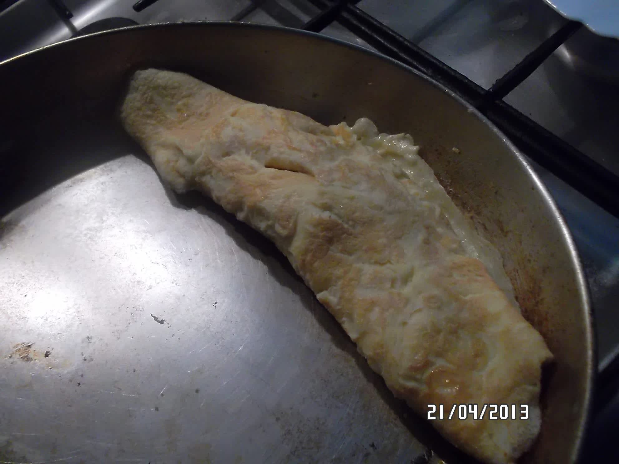 A pěkně ke kraji pánve pomocí obracečky zarolujeme.
