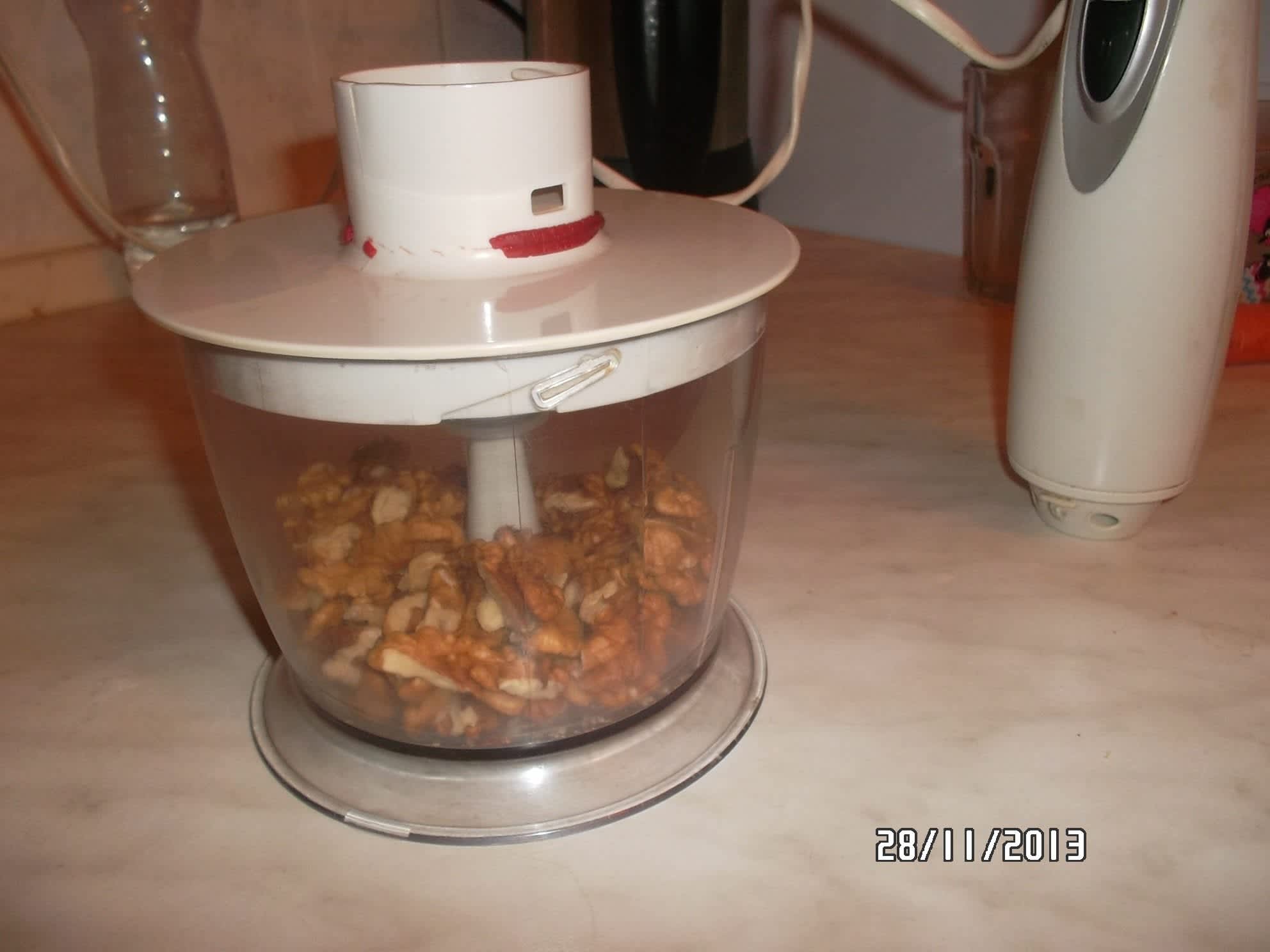 Začnu klasicky tím, že vyloupám ořechy a vyberu jen ty pěkné, nezčernalé apod. cca 200g
